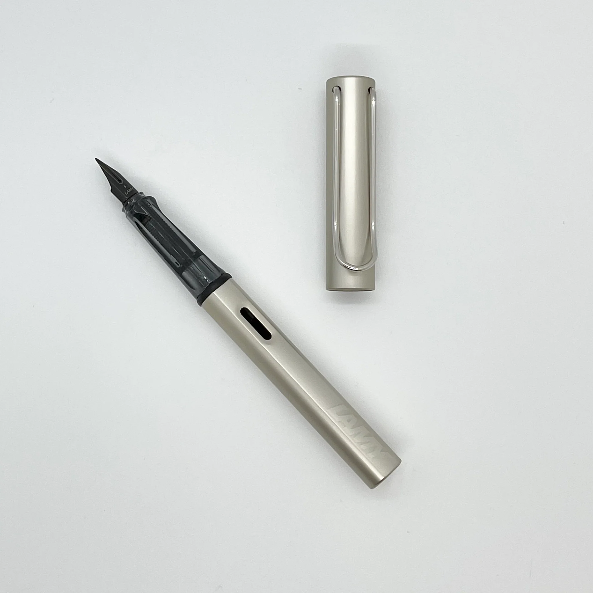 The Lamy LX Palladium Fountain Pen is a sophisticated and modern writing instrument that exudes a sleek, industrial elegance. Crafted from durable aluminum with a stunning palladium finish, the LX Palladium features a minimalist design that is both visually striking and comfortable to hold. The pen’s translucent grip section allows you to see the internal components, adding a touch of modern flair. Equipped with a high-quality steel nib coated in glossy black PVD, the LX Palladium Fountain Pen delivers a smooth and consistent ink flow for a pleasurable writing experience. This limited edition color option is sure to appeal to both new and seasoned Lamy enthusiasts who appreciate the brand’s commitment to quality craftsmanship and innovative design.