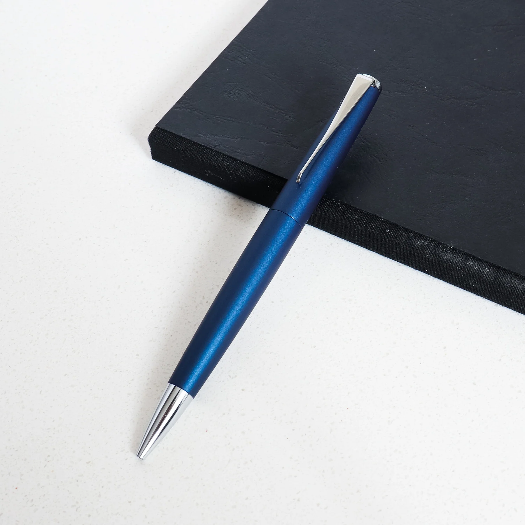 The Lamy Studio Imperial Blue Ballpoint Pen is a sophisticated writing instrument that combines innovative design with exceptional functionality. Crafted from a rich, matte blue lacquer finish over a metal barrel, the Studio Imperial Blue features Lamy’s iconic propeller-shaped clip that adds a touch of modern flair to the elegant, cylindrical form. Equipped with a high-quality ballpoint refill, this premium pen delivers a smooth and consistent ink flow for a pleasurable writing experience. The deep, saturated blue color creates a bold, yet refined aesthetic that is sure to appeal to both new and seasoned Lamy enthusiasts who appreciate the brand’s commitment to quality craftsmanship and design.
